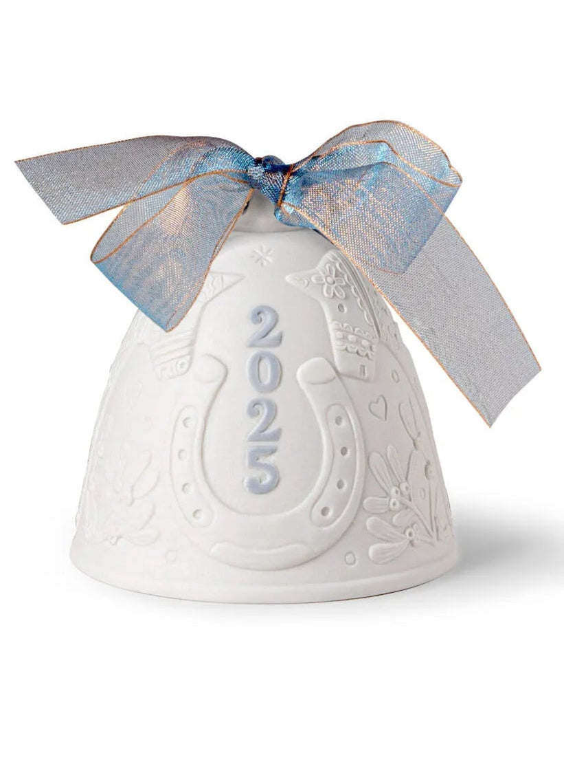 A joyful Lladro Bell is released for your 2025 Christmas Collection. This Lladro Annual Bell is dated 2025 in the traditional blue and white design. A must-have ornament for the holiday season as this all-time classic brings joy and tradition to decorating the home at Christmas.
