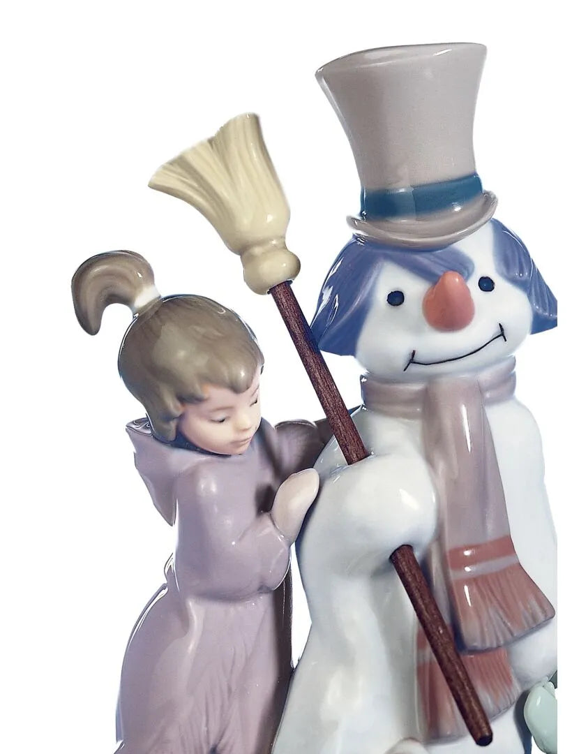 This Wintery Lladro is close to retiring. This sweet girl and boy in glossy porcelai are making a snowman and the puppy is even excited with all the movement and expressions. Winter is finally here! The first snow covers the streets and the children have been celebrating by building an enormous snowman! A glossy porcelain piece, finished in pastel colours, ideal as a gift, collectible or decoration.