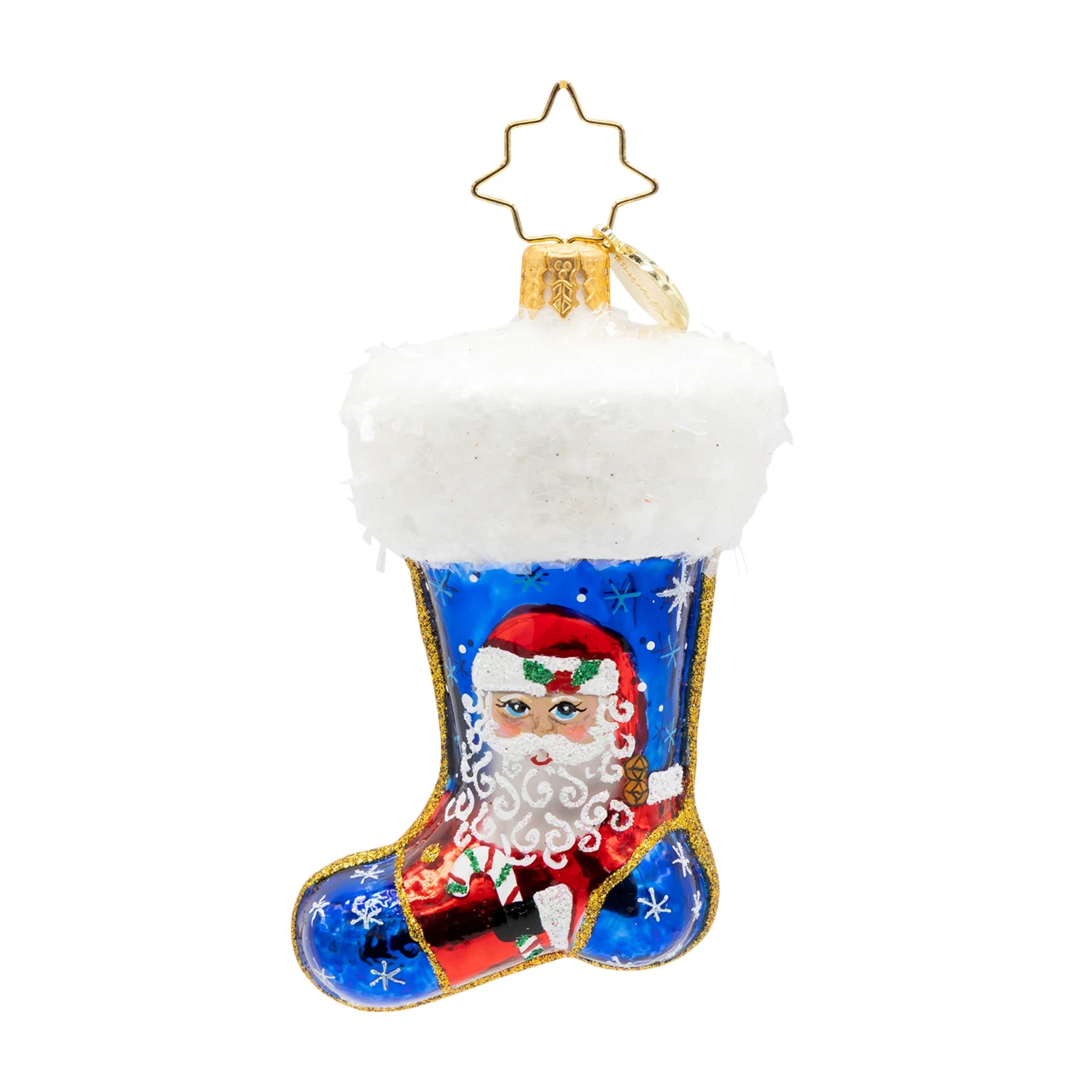 Celebrate the season with this enchanting Christopher Radko 2026 Winter Wishes Stocking Gem. This gem features dual designs, a cheerful Snowman on one side and jolly Santa on the other, bringing double the holiday charm to your tree. Handcrafted by signature artistry and attention to detail, this gem captures the magic of winter traditions. Perfect for collectors and those seeking a distinctive stocking stuffer that combines festive character and timeless elegance.