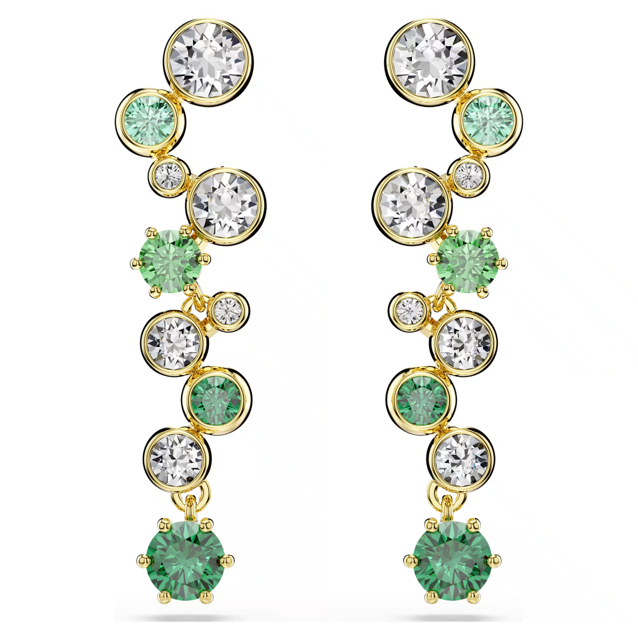 These starry Constella earrings are a unique choice for vivid self-expression. The gold-tone plated strands feature clear crystals and green Swarovski Zirconia in various sizes and shades, each presented in a prong or bezel setting. Wear them alongside the matching Constella necklace to maximize the light and color in your wardrobe.